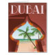 Poster de viagens do Palácio de Dubai, um palácio árabe a olhar para o deserto do médio Oriente.