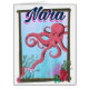 Nara Japan Squid poster de viagens, poster de viagens de desenho japonês.