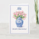Celebre-a com o charme atemporal da estética Grandmillennial. Este cartão de aniversário elegante apresenta um clássico jarro de gengibre Chinoiserie azul e branco cheio de tulipas rosa suave. Com sua borda tradicional rendilhada e tipografia serifada sofisticada, é a escolha perfeita para uma mãe, irmã ou amiga que ama o estilo clássico e sofisticado. Totalmente personalizável - adicione um monograma ou nome na frente e uma mensagem pessoal dentro através da ferramenta de design da Zazzle.