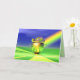 Cartão de felicitações feito para o dia de São Patrício com a minha arte original de computador de um brilhante pote de ouro e um arco-íris num céu azul.