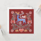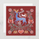 Motif de arte popular húngaro em fundo vermelho. Placa plana em forma quadrada.
