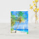 Cartão de agradecimento Praia da Ilha Tropical Palmeira Barco de Vela com uma pintura artística em aquarela de um barco distante navegando na costa de uma praia arenosa e quente. Você pode alterar o texto na frente para fazer qualquer tipo de cartão que desejar. O interior também é totalmente personalizável.