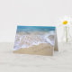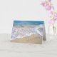 Mensagem de boas festas sobre areia oceânica com surf gelado.
