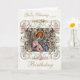 Cartão Prata Vitoriana com Rosas Rosa Aniversário