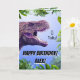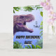 Cartão de aniversário de dinossauros fotorealistas de alta qualidade, completo com folhagem da selva. Perfeito para paleontólogos e amantes de dinossauros, assim como para entusiastas pré-históricos. O texto de idade e nome ajustável torna este cartão de aniversário adequado para qualquer faixa etária.