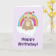 Uma preguiça marrom com uma impressão do hippie dos anos sessenta. Assento pacificamente na meditação em uma nuvem macia branca e em um arco-íris colorido demasiado.