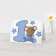Adorável ratinho bebê em azul com um grande número um rodeado por estrelas no primeiro aniversário do bebê.