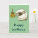 Um rato encantado com a vista de um presente perfeito de aniversário - um pedacinho de queijo! De uma ilustração original do pastel de petróleo por Tanya Bond.