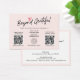 Este cartão-presente de código QR moderno da Tendy com script de caligrafia de na moda é uma escolha perfeita para mostrar sua gradação ao seu cliente. Apresenta 2 código QR, mídia social e informações de rede. Na parte traseira do cartão, você pode escrever mais mensagens para o seu cliente ou simplesmente escrever suas informações comerciais. Seu cliente amará este certificado de presente de código QR bonito e chic.