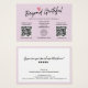 Este cartão-presente de código QR moderno da Tendy com script de caligrafia de na moda é uma escolha perfeita para mostrar sua gradação ao seu cliente. Apresenta 2 código QR, mídia social e informações de rede. Na parte traseira do cartão, você pode escrever mais mensagens para o seu cliente ou simplesmente escrever suas informações comerciais. Seu cliente amará este certificado de presente de código QR bonito e chic.