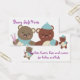 Ursos admiráveis do estilo kawaii com agulhas de tricô e bola de fio neste cartão de visita ou grandes etiquetas de presente feitas à mão, etiquetas de produto ou etiquetas penduradas para tricô ou artesanatos de fios. Ursos vestem cachecol e chapéu, um segura um par de agulhas de tricô roxas e outro uma bola de fio azul liso.