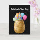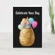 Celebrar o dia especial de alguém com este adorável e humorável design de aniversário de batata com um belo pud vestindo uma festa colorida cercada por balões festivos. Perfeito para amigos, família ou qualquer pessoa que aprecie humor peculiar e desejos de aniversário cheios de trocadilhos. Este charmoso personagem de batata traz sorrisos e risos a qualquer celebração de aniversário com seu tema lúdico de "batateira de sofá". conteúdo generativo.