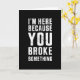 Este é o presente ideal para programadores com senso de humor. "Estou aqui porque você quebrou alguma coisa" é afirmado no topo como uma parte engraçada da vida dos funcionários de suporte de TI ou dos dispositivos de software.