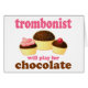 Este design cómico do trombonist tem um trio dos cupcakes e do slogan da música que diz o Trombone - jogará para o chocolate.