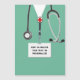 Cartão de presente de uma escola de enfermagem criativa, com esfregões hospitalares e estetoscópio. Para personalizar o texto de edição para adicionar o nome da escola de enfermagem ou enfermagem para criar um parabéns de graduação, um desejo de aniversário ou um cartão de apreciação de enfermeira.