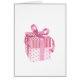 Ilustração de um presente bonito, envolto em um belo papel riscado, rosa e branco, amarrado com uma fita e um arco cor-de-rosa. Uma ideia elegante e divertida para um amigo, ou amante da cor rosa! Excelente de aniversário, aniversário, obrigado, parabéns ou ocasião especial. Também corresponde ao: