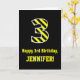 A frente deste design de cartão de saudação de aniversário ousado e divertido apresenta um grande número "3", com um padrão de listras preto e amarelo. Ele também apresenta a mensagem "Happy aniversário de 3 anos," e um nome personalizável. O fundo da frente é preto colorido. O dentro apresenta uma mensagem de saudação de aniversário personalizável, ou talvez possa ser apagado e deixado o vazio se uma mensagem for escrita manualmente. Um cartão de aniversário personalizável como este pode ser uma maneira divertida de enviar uma mensagem para celebrar o terceiro aniversário de alguém. [~Z0000382]