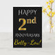 Cartão Preto, Falso Ouro Aniversário de 2º Casamento + No