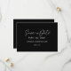 Este cartão preto plano clássico moderno para salvar a data do casamento é perfeito para o seu casamento elegante moderno. Este design apresenta caligrafia simples branca destacada em um fundo preto escuro para combinar com o seu casamento clássico tradicional ou casamento boho minimalista na primavera, verão, outono ou inverno. Por favor, sinta-se à vontade para entrar em contato conosco com qualquer dúvida sobre este design.