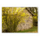 O florescente forsythia antecipa um velho granário perto da Skyline Drive, Virginia