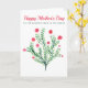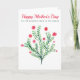 Cartão de dia de as mães com desenho a tinta e a aquarela de um primavera em cor rosa e verde sobre fundo branco personalizável. Esta elegante carta-mãe apresenta o texto personalizável "Feliz Dia de as mães para a maior mãe do mundo".