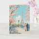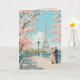 Um belamente ilustrado poster de viagens ao estilo dos anos 50 que mostra um casal romântico rolando debaixo da florescente cereja florescendo com a Torre Eiffel ao fundo. Os tons pastéis e a estética retrorreflectora capturam o charme eterno da primavera em Paris.