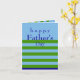 A placa de Dia de os pais personalizável mostra o cartões de natal "Dia de os pais feliz" em um design elegante com uma combinação de tons verde primavera e azul. Este cartão contemporâneo inclui um campo de texto personalizável para a sua mensagem pessoal, que atualmente inclui "Para o meu Pai, você é o meu melhor amigo e treinador de vida. Sou incrivelmente grato por tê-lo na minha vida." Personalize-o para torná-lo exclusivo e emparelhe-o com um envelope e um presente de combinação para uma apresentação ousada, ponderada e coordenada. © Wafa Y. Dahdal - Todos os direitos reservados.