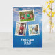Um cartão de foto personalizado com 3 fotos em selo postal contra um céu azul lindo para celebrar seu PAPAI de Primeira Classe, Melhor Pai de Todos. Basta carregar sua foto favorita e ver convertida em um selo divertido de Primeira Classe para o seu PAPAI de Primeira Classe! Você também pode usar o modelo de texto alterando "PAPAI de Primeira Classe" para outros entes queridos em sua vida.