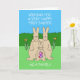 Um desenho de uma família de coelhos de três, com o coelho bebê segurando um ovo de Páscoa. As palavras "Desejando-lhe uma primeira páscoa muito feliz como família" acompanham a imagem.