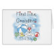 A primeira vez que a vovó de um bebê vai adorar esta design fofa com um coelho, bolas, pato e pacificador na Primeira Vez Vovó de Camisetas Meninos, capuzes, canecas, cartões, adesivos, sacos de tote, ímãs, mousépias e outras roupas e presentes.