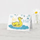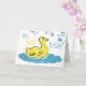 natações bonitinhas de pato através deste cartão para um PRIMEIRO BIRTHDAY WISH. A frase do dentro diz: (Uma pequena vela, colocada no bolo... Um primeiro desejo de aniversário! Feliz aniversário para o seu primeiro.) mas PODE SER ALTERADO! arte texturizada animada desenhada à mão por imagens kaps