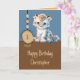 Cartão primeiro aniversario 1 hoje nome azul-leopardo gir