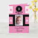Primeiro cartão de cumprimentos de aniversário. 1 hoje. Adicionar & nome de foto. Cartão de primeiro aniversario para uma garotinha. Rosa e preto com estrelas.