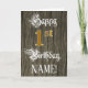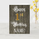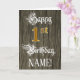 A frente deste elaborado e formal design de cartões de saudação de aniversário apresenta a mensagem "primeiro aniversario Feliz", e um nome de destinatário personalizado. Parte da mensagem está no texto luxuoso do estilo script. O grande número "1rua" apresenta um padrão de aparência falsa/imitado inspirado em ouro. O fundo tem um padrão falsa/imitado de grãos de madeira. O dentro tem uma mensagem de saudação de aniversário personalizada, ou talvez pudesse ser apagado e deixado vazio se uma mensagem fosse escrita manualmente. Um cartão de saudação de aniversário editável como este pode ser usado para reconhecer o primeiro aniversário de alguém. [~Z0000561]