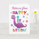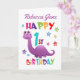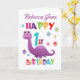 Cartão Primeiro aniversario de Dinossauro Roxo