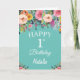 Cartão primeiro aniversario Flor Floral de Aquarela Teal