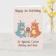Celebre o adorável primeiro aniversario dos gêmeos com este charmoso e animador cartão de aniversário. Com dois ursos doces segurando alegremente um bolo com uma vela de solteiro, este cartão captura perfeitamente a essência do dobro da alegria e duplica a diversão.