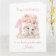 Cartão primeiro aniversario Menina Rosa Elefante Cai Pump