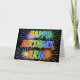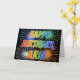Este design de saudação de aniversário divertida, vibrante e multicolorido apresenta a mensagem "FELIZ BIRTHDAY" e o nome comum "ARIA" com as letras que têm um espectro colorido do arco-íris como um padrão de colorir gradiente. O plano de fundo da frente também apresenta um padrão inspirado em fogos de artifício coloridos. O dentro apresenta uma mensagem de saudação personalizada, ou talvez possa ser apagado e deixado o vazio se uma mensagem for escrita manualmente. Um cartão de cumprimentos de aniversário como este pode ser uma maneira divertida de reconhecer o aniversário de alguém chamado Aria. [~Z0000350]