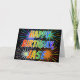 Este vibrante, multicolorido e divertido design de saudação de aniversário apresenta a mensagem "HAPPY BIRTHDAY" e o nome comum "JASE" com as letras que têm um espectro colorido do arco-íris como um padrão de colorir gradiente. O fundo da frente também apresenta um padrão colorido inspirado pela aparência de fogos de artifício comemorativos em explosão. O dentro apresenta uma mensagem de saudação personalizável, ou talvez possa ser apagado e deixado o vazio se uma mensagem for escrita manualmente. Um cartão de saudação como este pode ser uma maneira divertida de enviar uma mensagem de aniversário personalizada a alguém chamado Jase. [~Z0000350]