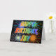 Este design de cartão de saudação de aniversário multicolorido e divertido apresenta a mensagem "FELIZ BIRTHDAY" e o nome comum "JAY" com as letras que têm um espectro colorido do arco-íris como um padrão de colorir gradiente. O plano de fundo da frente também apresenta um padrão colorido inspirado pela aparência de fogos de artifício que explodem. O dentro apresenta uma mensagem de saudação personalizada, ou talvez possa ser apagado e deixado o vazio se uma mensagem for escrita manualmente. Um cartão de cumprimentos de aniversário como este pode ser uma maneira divertida de enviar uma mensagem de saudação de aniversário personalizável a alguém chamado Jay. [~Z0000350]