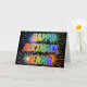 Este vibrante, multicolorido e divertido design de saudação de aniversário apresenta a mensagem "FELIZ BIRTHDAY" e o nome comum "JENNA" com as letras que têm um espectro colorido do arco-íris como um padrão de colorir gradiente. O fundo da frente também apresenta um padrão colorido inspirado pela aparência de fogos de artifício comemorativos em explosão. O dentro apresenta uma mensagem de saudação personalizada, ou talvez possa ser apagado e deixado o vazio se uma mensagem for escrita manualmente. Uma carta de boas-vindas como esta pode ser uma maneira divertida de celebrar o aniversário de alguém chamado Jenna. [~Z0000350]