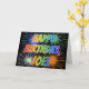 Este design de cartão de saudação de aniversário multicolorido e divertido apresenta a mensagem "HAPPY BIRTHDAY" e o nome comum "JOEL" com as letras que têm um espectro colorido do arco-íris como um padrão de colorir gradiente. O plano de fundo da frente também apresenta um padrão inspirado em fogos de artifício coloridos. O dentro apresenta uma mensagem de saudação personalizada, ou talvez possa ser apagado e deixado o vazio se uma mensagem for escrita manualmente. Um cartão de cumprimentos de aniversário como este pode ser uma maneira divertida de reconhecer o aniversário de alguém chamado Joel. [~Z0000350]