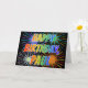 Este design de saudação de aniversário divertida, vibrante e multicolorido apresenta a mensagem "FELIZ ANIVERSÁRIO" e o nome comum "PAUL" com as letras que têm um espectro colorido do arco-íris como um padrão de colorir gradiente. O fundo da frente também apresenta um padrão colorido inspirado pela aparência de fogos de artifício comemorativos em explosão. O dentro apresenta uma mensagem de saudação personalizada, ou talvez possa ser apagado e deixado vazio se uma mensagem for escrita manualmente. Um cartão de cumprimentos de aniversário como este pode ser divertido de dar a alguém chamado Paul no seu aniversário. [~Z0000350]