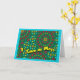 Primeira celebração dos Cinco de Mayo, cartão de boas-vindas em papel. Design de arte digital com padrões geométricos coloridos. Enquadrado numa cor turquesa. O texto no cobrir está em uma mensagem de Dentro amarelo brilhante que pode ser mudado / personalizado. Arte, imagem e direitos de autor © Shoaff Ballanger Studios.