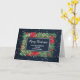 Feliz Natal para o primo e seu cartão de família com cor d'água rústica verde e fundo de neve.