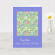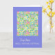 Um Cartão de Aniversário bonito de fevereiro para uma sobrinha, com um padrão de primatas cor-de-rosa profundo, azuis profundos e amarelas, a Flor do Mês de Aniversário de fevereiro, de um design pintado à mão por Judy Adamson.