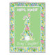 Um Cartão de Saudação de Páscoa bonito para uma Filha, com um Coelho Bonito num fundo verde pálido e uma borda de primatas coloridos. Sinta-se à vontade para personalizar a mensagem dentro.