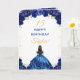 Este cartão de aniversário elegante e glamouroso pode ser personalizado com um nome ou título como filha, neta, sobrinha, amiga, etc. O design apresenta uma bela princesa com cabelo escuro em um vestido azul escuro. O texto combina o script manuscrito e as fontes sans serif modernas para um aspecto elegante e sofisticado. Os arranjos florais e o confete de ouro criam a mistura perfeita de rústicos e quicos. Gráficos por www.etsy.com/uk/shop/SunflowerDayLove
