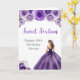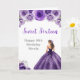 Este doce cartão de 16 anos apresenta uma bela princesa num vestido de bola roxa escura com arranjos florais. Isto é perfeito para uma doce festa de aniversário de dezesseis.